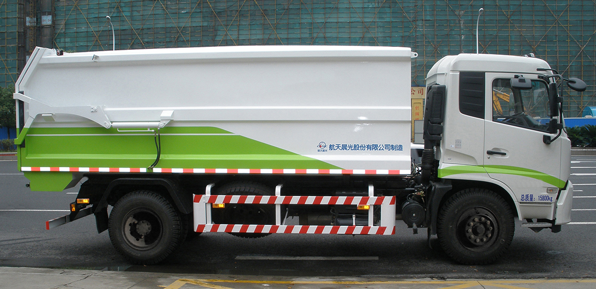 CGJ5160ZDJE5型自卸式垃圾車是液壓后傾式自卸車,采用傾翻卸料方式。垃圾箱設(shè)有液壓開啟上開蓋,采用液壓傳動(dòng),能夠保證垃圾運(yùn)輸過程中的密閉性。整個(gè)裝卸過程機(jī)械化程度高,裝載量大、操作方便、動(dòng)作平穩(wěn)、安全可靠、維修方便。后門鎖緊機(jī)構(gòu)機(jī)械鎖緊,隨著廂體舉升和下降,自動(dòng)打開和鎖緊。能有效的防止在裝載運(yùn)輸過程中的垃圾飛揚(yáng),避免二次污染。整車造型新穎、美觀、大方、操作簡(jiǎn)單,卸料快捷、干凈、駕乘舒適。